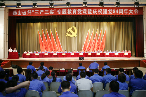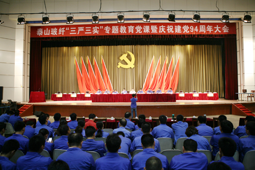 6月19日,泰山玻纖舉辦“三嚴(yán)三實”專題教育黨課暨慶祝建黨94周年大會。會上,中材股份副總裁、泰山玻纖黨委書記蘇逵以《踐行“三嚴(yán)三實” 打造優(yōu)秀領(lǐng)導(dǎo)團隊 建設(shè)最具競爭力企業(yè)》為題,講授了“三嚴(yán)三實”專題教育黨課。會議由黨委副書記、紀(jì)委書記李成泉主持,公司董事長、總經(jīng)理唐志堯等全體黨政領(lǐng)導(dǎo)班子出席會議,公司全體黨員、主管以上管理人員共計400余人參加會議。