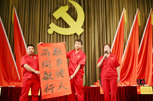 會后,舉辦了建黨94周年知識競賽?;顒蝇F(xiàn)場, 12支代表隊緊張有序地答題,扣人心弦,精彩紛呈。本次知識競賽圍繞著黨章、黨史、廠情等內(nèi)容展開,增加了理論演繹環(huán)節(jié),打破了以往單純的知識答題,對競賽項目進行了改革和創(chuàng)新,使知識競賽活動不僅能充分鍛煉選手們的學(xué)習(xí)能力,而且還能全面展示選手們的綜合素質(zhì)。