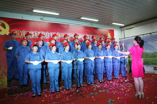 7月1日,泰山玻纖2013年度黨工團工作表彰大會暨慶祝建黨93周年歌詠比賽在公司培訓(xùn)教室隆重舉行。公司黨委委員、領(lǐng)導(dǎo)班子成員、中層以上管理人員以及來自各基層黨、工、團組織的代表共計300余人匯聚一堂,共同慶賀中國共產(chǎn)黨93華誕。
